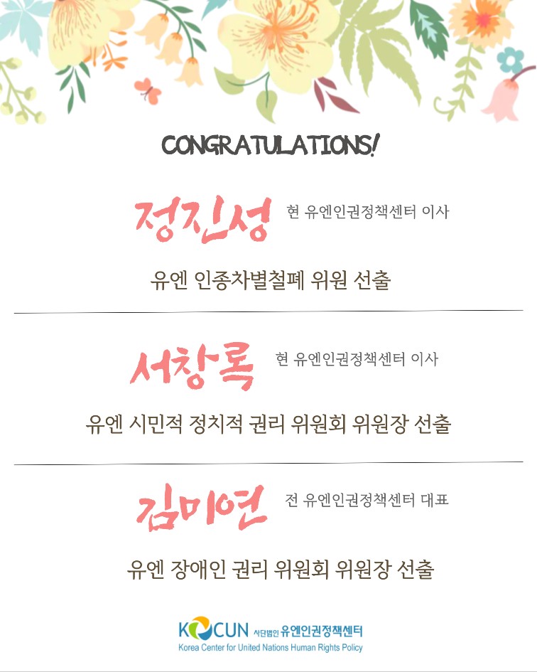 유엔인권위원회 위원 및 위원장으로 선출되셨습니다.