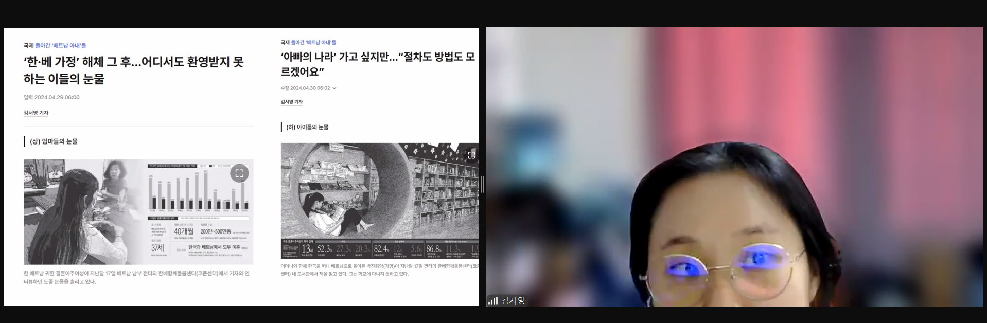 김 기자는 이 아이들을 단순히 귀환 여성의 자녀로만 보지 말고, ‘국제이주의 주체’로서 정책적 보호가 필요하다고 강조했습니다.