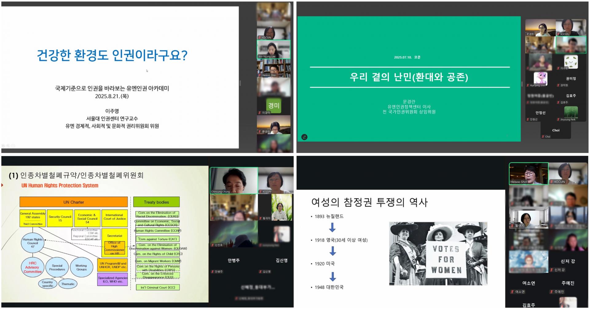 2025년 4월 26일, ‘내 권리를 지켜주는 유엔인권시스템’을 시작으로 유엔인권아카데미가 열렸습니다. 총 10번의 강의가 이어졌고, 지난 9월 26일 마지막 수업을 마치며 한 시즌을 마무리했습니다.